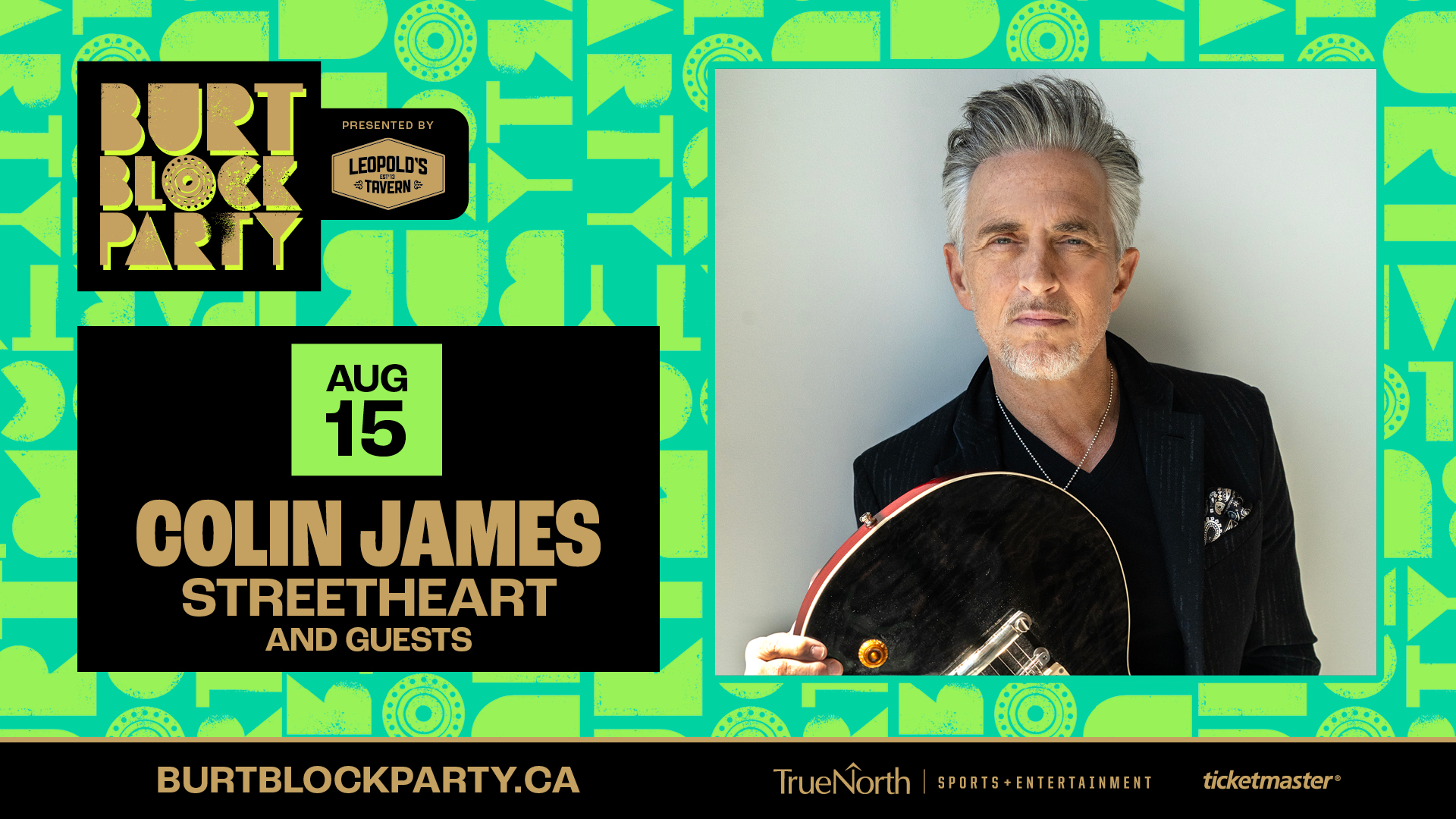 Colin James kicks off Saturday night of the Burt Block Party presented by Leopold’s Tavern!