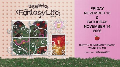 Begonia (the stage name of Alexa Dirks) is pleased to announce the Fantasy Life Tour which will run throughout Canada beginning September 29, supporting her JUNO Award nominated album, Fantasy Life. The Fantasy Life Tour will be stopping by the Burton Cummings Theatre on Friday, Nov. 13. Begonia launched her solo career in 2017 with […]